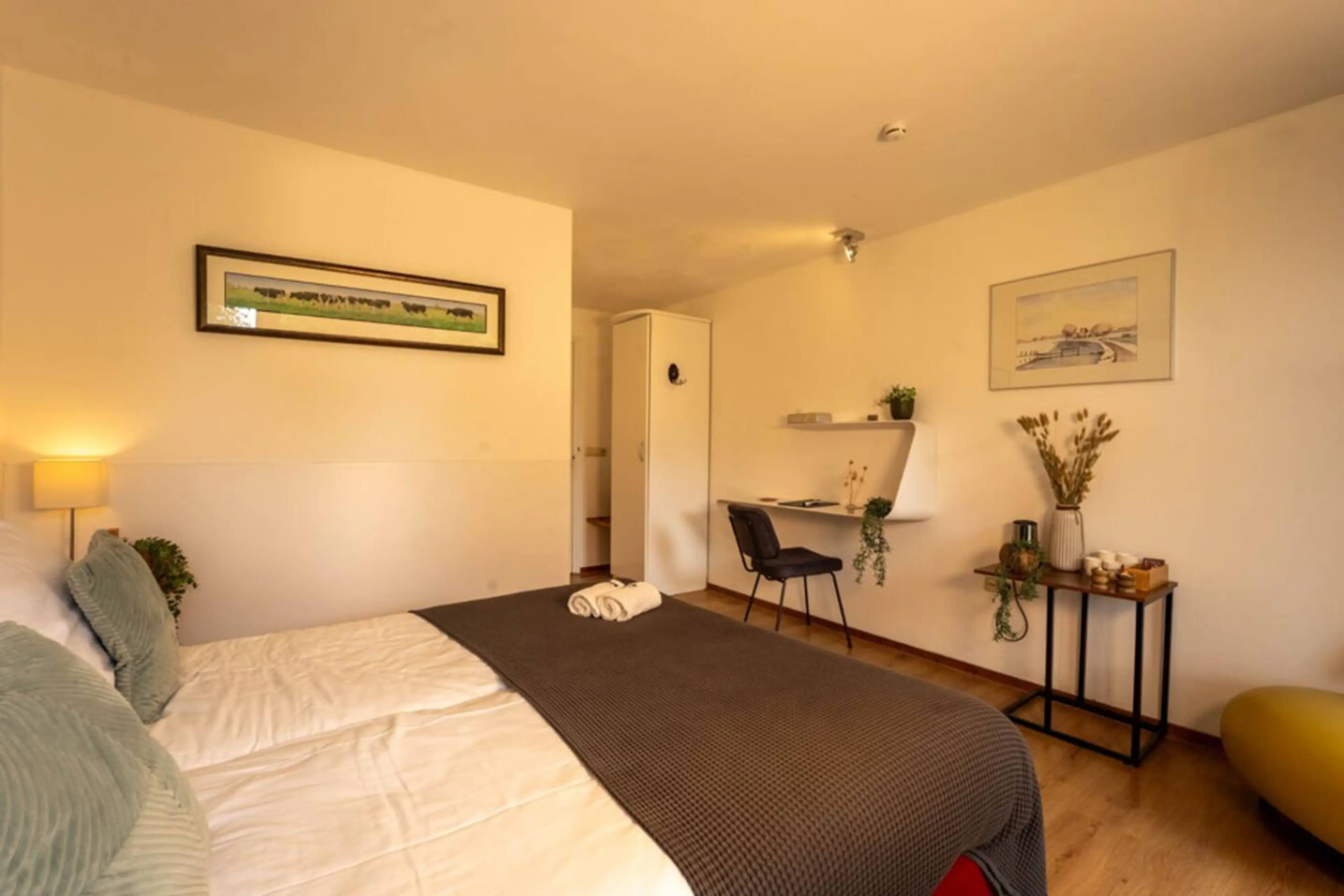 Slaap in de tuinkamer, jouw eigen plek op Pean-buiten Weidum Deze comfortabele kamer ligt in het groen, met uitzicht op de boomgaard en de grote tuin. Je beschikt over een heerlijk bed, een fijne zithoek en een privébadkamer. Alles voor jouw moment van ontspanning. De tuinkamer ligt op een unieke ...