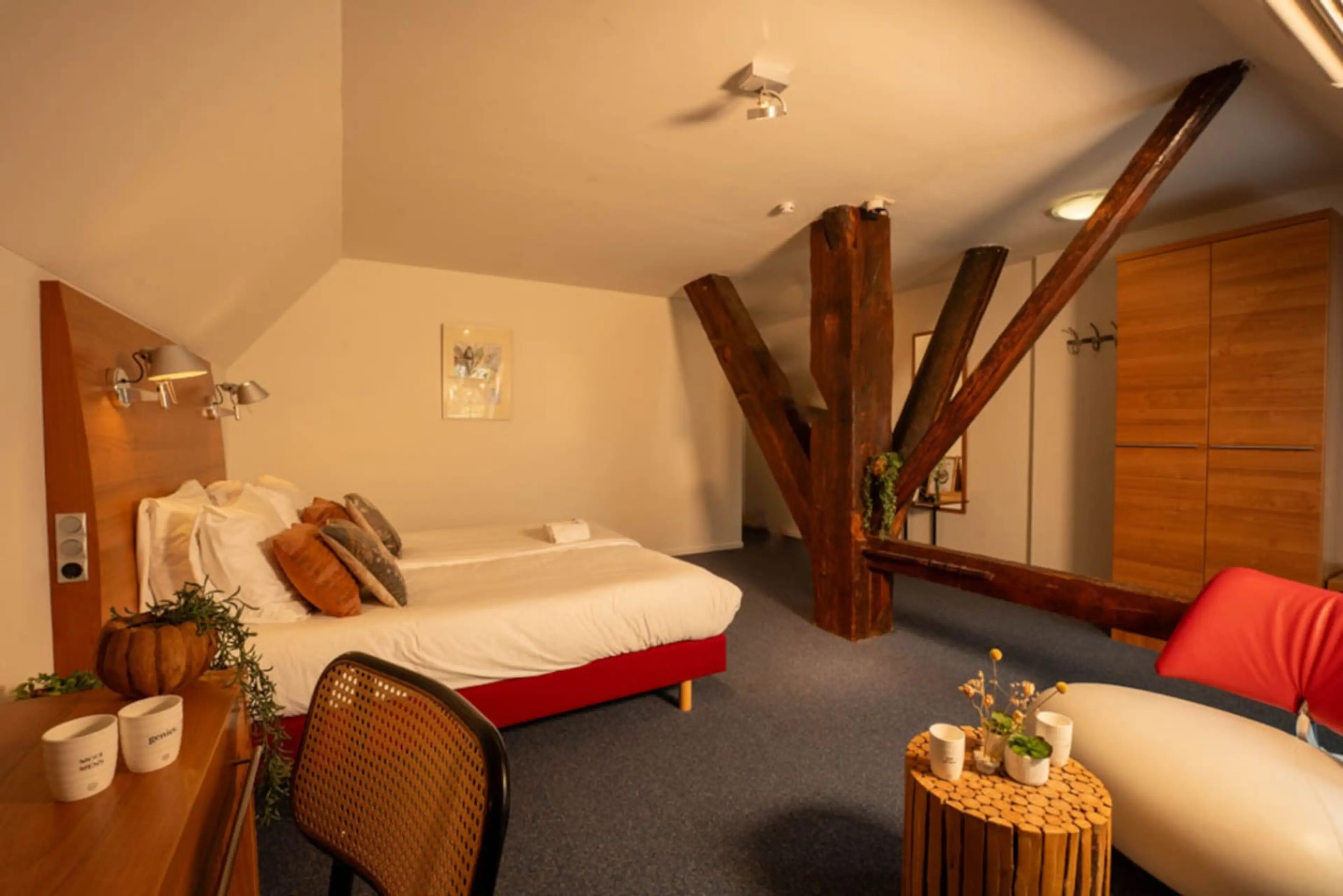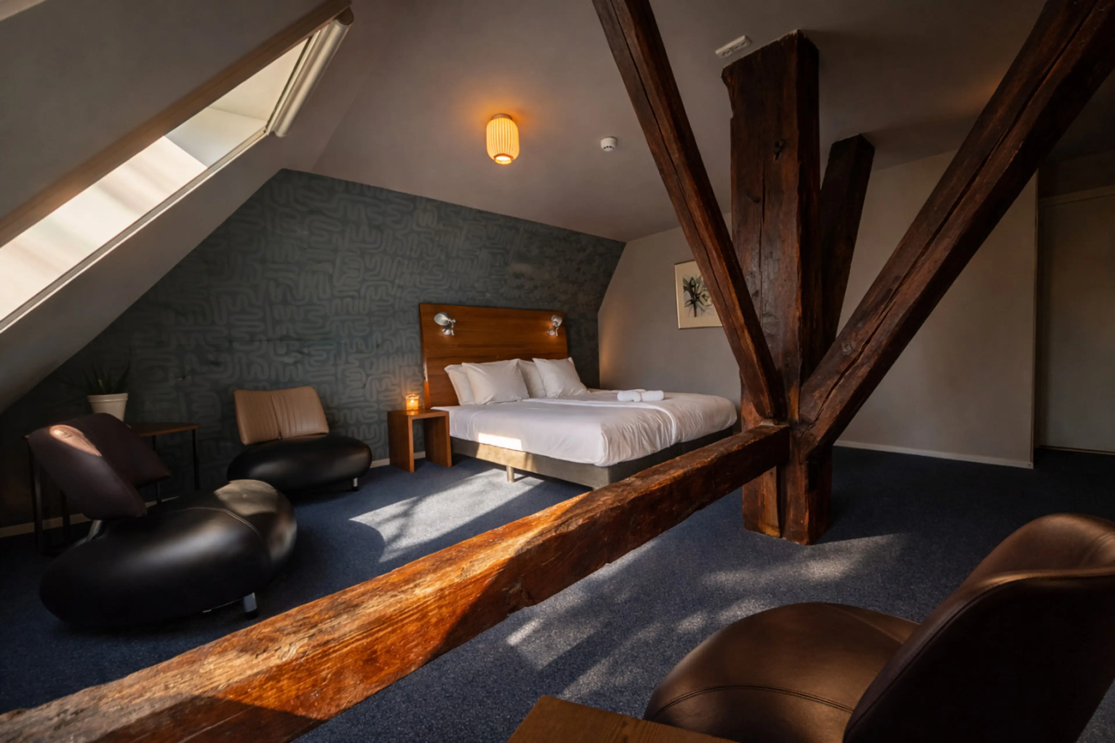 Slaap in een authentieke boerderij nabij Leeuwarden. Deze hotelkamer ligt in een rijksmonument uit 1867, met historische details en modern comfort. Je kijkt uit op de boomgaard en de grote tuin. De kamer heeft een heerlijk bed, een zithoek en een privébadkamer. Buiten is het stil, groen en open. ...