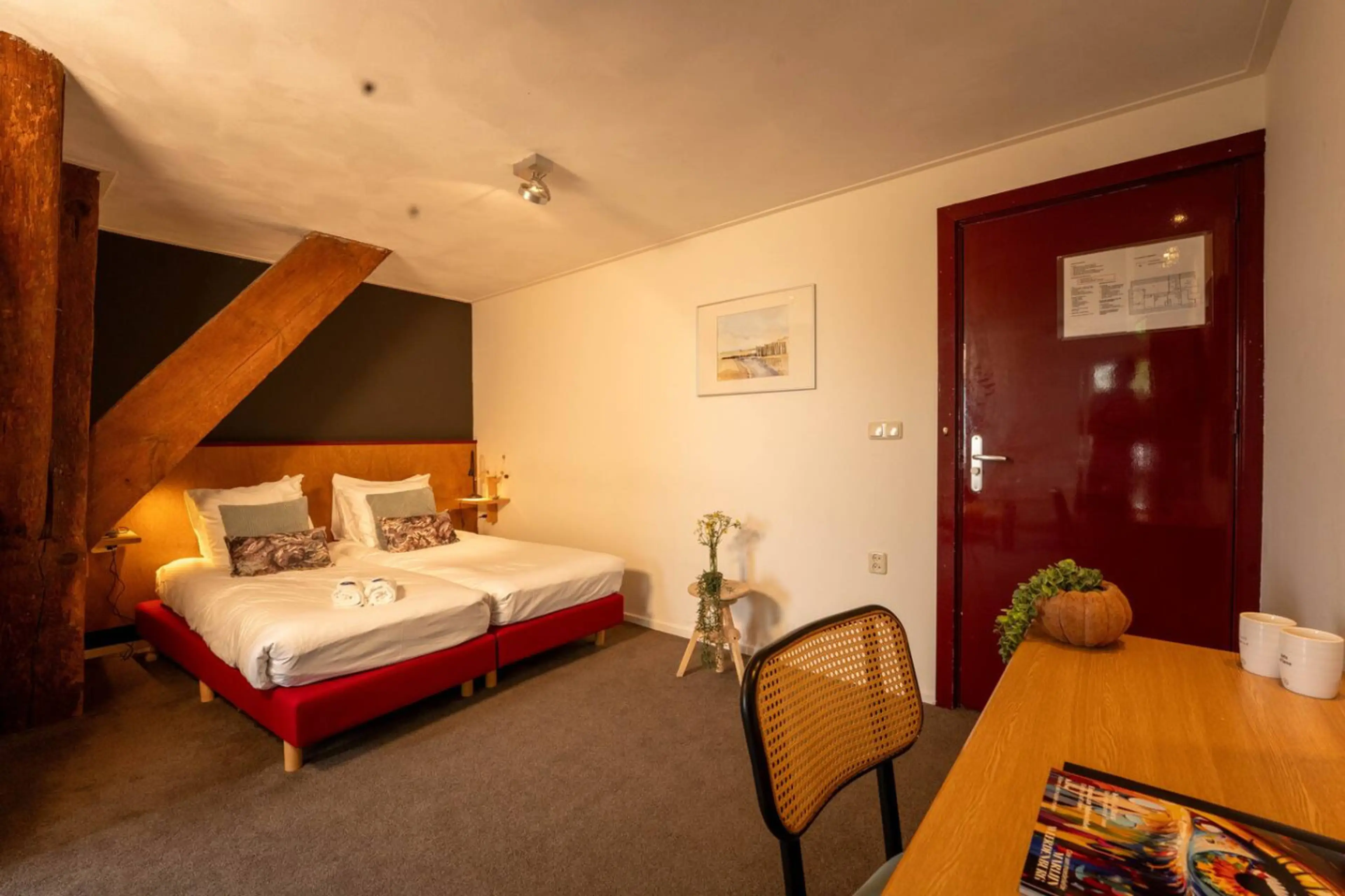 Slaap in een authentieke boerderij nabij Leeuwarden. Deze hotelkamer ligt in een rijksmonument uit 1867, met historische details en modern comfort. Je kijkt uit op de boomgaard en de grote tuin. De kamer heeft een heerlijk bed, een zithoek en een privébadkamer. Buiten is het stil, groen en open. ...